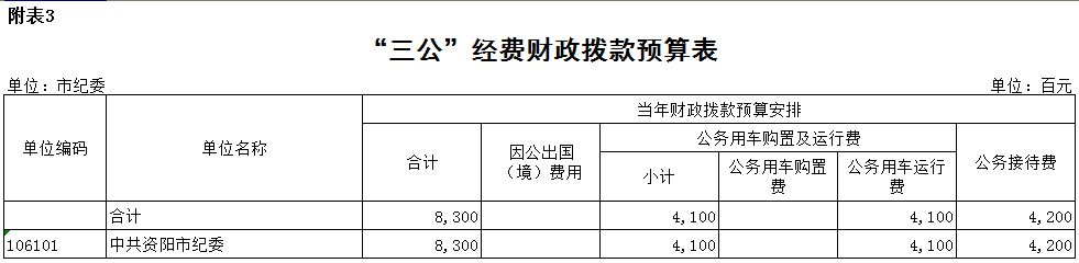 附表3 “三公”经费财政拨款预算表