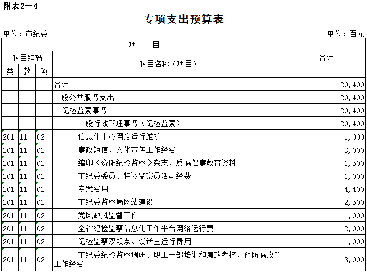 附表2-4 专项支出预算表