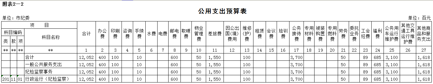 附表2-2 公共支出预算表
