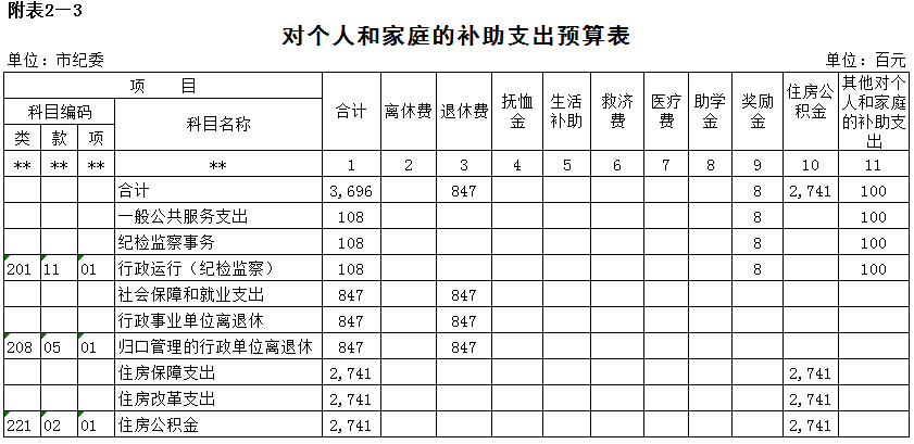 附表2-3 对个人和家庭的补助支出预算表